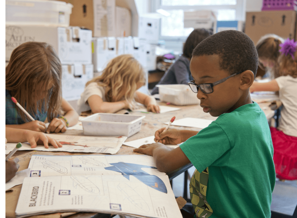 Tutoring for students in kindergarten through sixth grade, focused on building foundational skills and collaboration in a supportive learning environment for skill development, confidence, and engagement with learning.